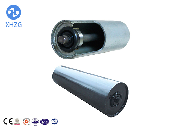缓冲托辊安装在输送机受料段的下方,减小落料时物料对输送带的冲击,以延长输送带的使用寿命.缓冲托辊的间距一般100-600毫米。